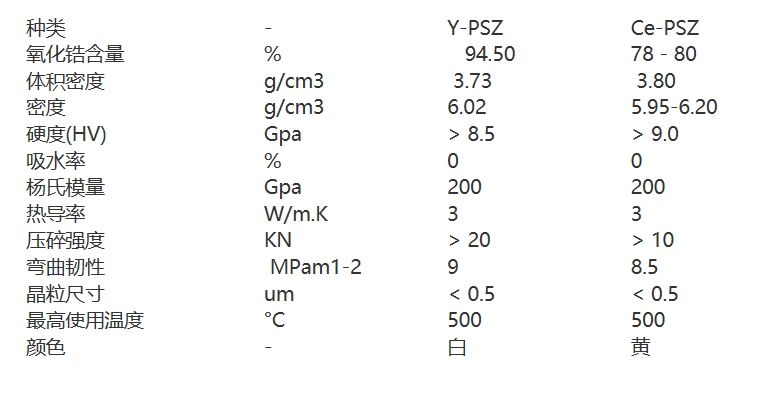 氧化鋯陶瓷磨介的主要性能參數圖表